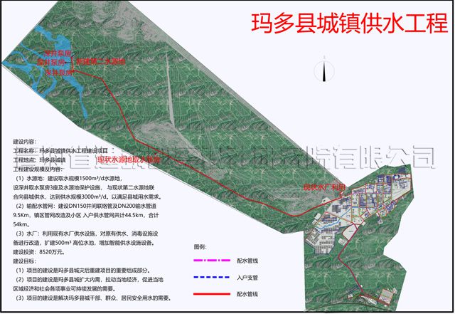 果洛州瑪多縣城鎮(zhèn)供水工程建設(shè)項(xiàng)目位于瑪多縣瑪查理鎮(zhèn),總投資8520萬元,中標(biāo)額218.87萬元,其中主要包括1500m3/d水源地建設(shè)、54km輸配水管網(wǎng)建設(shè)、原有水廠改造等。
